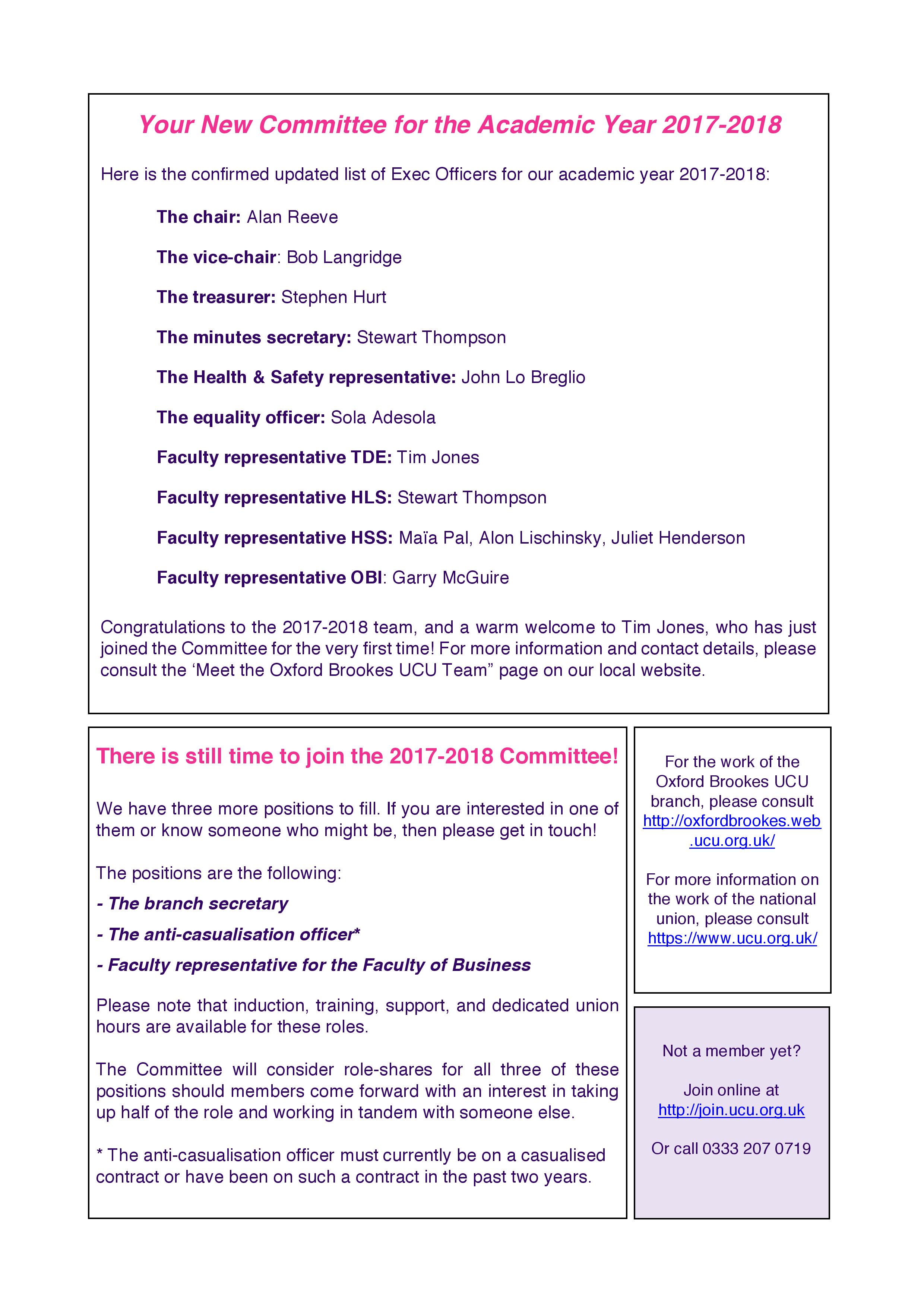 Sixth OBU UCU Newsletter, 25 May 2017 Our sixth OBU UCU information bulletin, laying out our local equality strategy and informing our members of the committee election results.